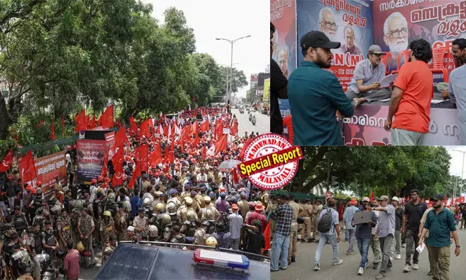 തിരുവനന്തപുരം: പതിവ് തെറ്റിച്ച് 'ഞായറാഴ്ചയും' സെക്രട്ടറിയേറ്റിന് മുന്നില് സംഘര്ഷം. ആയിരങ്ങളാണ് പ്രതിഷേധ മുദ്രാവാക്യവുമായി സെക്രട്ടറിയേറ്റിന്റെ സമര ഗേറ്റിലെത്തിയത്. കണ്ടവരെല്ലാം ഞായറാഴ്ചയിലെ സെക്രട്ടറിയേറ്റ് കണ്ട് അമ്പരന്നു. സാധാരണ സമരമെന്ന് കേട്ടാല് ആരും സെക്രട്ടറിയേറ്റിന് മുന്നിലെത്തില്ല. എന്നാല് ഒക്ടോബര് അഞ്ചിനുള്ള സെക്രട്ടറിയേറ്റ് വളയല് അറിഞ്ഞ് ഒരു ഭയവുമില്ലാതെ തിരുവനന്തപുരത്തുകാര് ആവേശത്തില് തന്നെ അവിടെ എത്തി. അതായിരുന്നു ഈ സമരത്തിന്റെ പ്രത്യേകതയും.