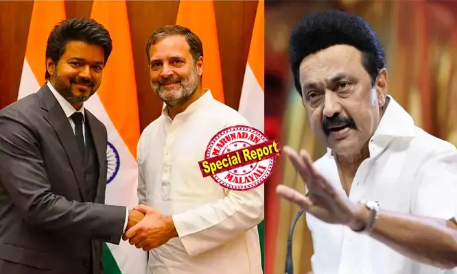 വിജയിന്റെ പാര്ട്ടിയായ തമിഴക വെട്രി കഴകവുമായി (TVK) ഭാവിയില് ഒരു രാഷ്ട്രീയ ധാരണയ്ക്ക് കോണ്ഗ്രസ് തയ്യാറെടുക്കുന്നുണ്ടോ എന്ന സംശയമാണ് രാഹുലിന്റെ എക്സ് പോസ്റ്റിലൂടെ ഉയരുന്നത്. വിജയിന് യുവാക്കള്ക്കിടയിലുള്ള വന് സ്വാധീനം കോണ്ഗ്രസിന് സംസ്ഥാനത്ത് പുതിയ ഊര്ജ്ജം നല്കുമെന്ന് പാര്ട്ടിക്കുള്ളിലെ ഒരു വിഭാഗം വിശ്വസിക്കുന്നു.