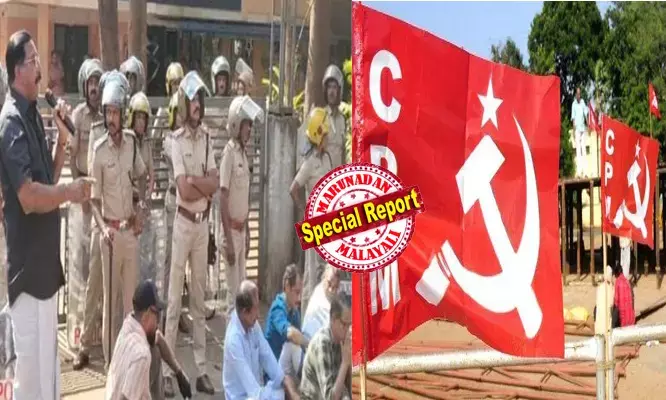 2021ല് സി. പി. എമ്മില് നിന്നും പുറത്തു പോയ കോമത്ത് മുരളീധരനെതിരെ പൊലീസ് സി.പി.ഐയില് ചേര്ന്നതിന് നിരന്തരം കള്ളക്കേസെടുക്കകയാണെന്നും പൊലി സില് സ്വാധീനം ചെലുത്തി കാപ്പ ചുമത്തി ജയിലില് അടക്കാന് നീക്കം നടത്തുന്നുവെന്നാണ് സി.പി.ഐയുടെ ആരോപണം. എന്നാല് സി.പി.ഐ നടത്തിയ പൊലിസ് സ്റ്റേഷന് മാര്ച്ചിനെ തള്ളിപ്പറഞ്ഞു കൊണ്ട് സി.പി.എം കണ്ണൂര് ജില്ലാ സെക്രട്ടറിയംഗം ടി.കെ ഗോവിന്ദന്, തളിപ്പറമ്പ് ഏരിയാ സെക്രട്ടറി കെ.സന്തോഷ് എന്നിവര് രംഗത്തുവന്നു.