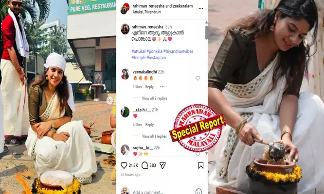 കഴിഞ്ഞ ദിവസം തന്റെ ഇന്സ്റ്റാഗ്രാം പേജിലൂടെയാണ് റെനീഷ ആറ്റുകാല് പൊങ്കാലയില് പങ്കെടുത്തതിന്റെ ചിത്രങ്ങളും വീഡിയോകളും പങ്കുവെച്ചത്. 'എന്റെ ആദ്യ ആറ്റുകാല് പൊങ്കാല' എന്ന് കുറിച്ചുകൊണ്ട് മനമുരുകി പ്രാര്ത്ഥിക്കുന്ന ദൃശ്യങ്ങള്ക്കൊപ്പം സന്തോഷം പ്രകടിപ്പിക്കുകയായിരുന്നു താരം. ഈ പോസ്റ്റിന് വലിയ പിന്തുണയും പ്രശംസയും ലഭിച്ചു. റംസാന് മാസത്തില് നോമ്പ് നോറ്റ് പൊങ്കാല അര്പ്പിച്ചതിനെ അഭിനന്ദിച്ച് നിരവധി പേര് രംഗത്തെത്തി. 'ഇതാണ് യഥാര്ത്ഥ കേരള സ്റ്റോറി' എന്ന് പലരും അഭിപ്രായപ്പെട്ടു.