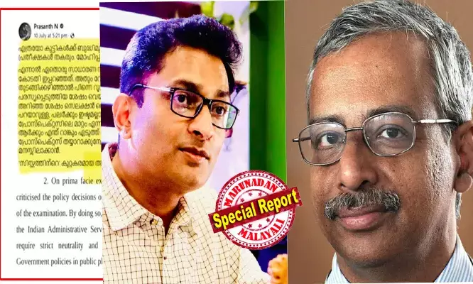 കീമുമായി ബന്ധപ്പെട്ട. കോടതി വിധി ഉദ്ധരിച്ച് ജൂലൈ 10ന് ഒരു ചെറിയ പോസ്റ്റ് ഇട്ടതിനാണ് ഇപ്പോള് അച്ചടക്ക നടപടി വന്നിരിക്കുന്നത്. എന്നാല്, നിയമപരമായ തത്വങ്ങളെയും ഭരണഘടനാ മേധാവിത്വത്തെയും പരസ്യമായി ഉയര്ത്തിപ്പിടിക്കാനും പൊതുജനങ്ങളില് അവബോധം സൃഷ്ടിക്കാനുമുള്ള കടമയുടെ ഭാഗമായാണ് താന് വിധി പങ്കുവെച്ചതെന്നും, കോടതി വിധി വായിക്കുന്നതോ അതിലെ കാര്യങ്ങള് ആവര്ത്തിക്കുന്നതോ കുറ്റകരമല്ലെന്നും പ്രശാന്ത് പറഞ്ഞു. നിയമ ലംഘനത്തെ പ്രകീര്ത്തിക്കണമെന്നും കോടതി വിധിയെ തമസ്കരിക്കണമെന്നും ഉന്നത ഉദ്യോഗസ്ഥന് ആവശ്യപ്പെടുന്നത് ശുദ്ധമായ ധാര്ഷ്ട്യമാണ് എന്നും അദ്ദേഹം കുറ്റപ്പെടുത്തി.