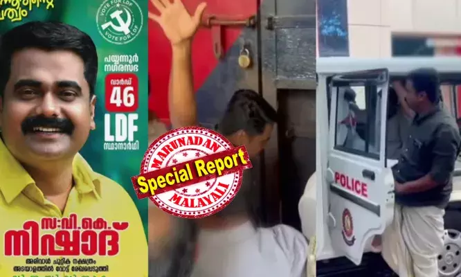 പയ്യന്നൂര് എം. എല്. എ ടി. ഐ മധുസൂദനന്റെ അതീവവിശ്വസ്തരിലൊരാളായ യുവനേതാവാണ് വി.കെ നിഷാദ്. ഇയാളും എം. എല്. എയും ഒരുമിച്ചു നില്ക്കുന്ന ഫോട്ടോകള് സോഷ്യല് മീഡിയയില് പ്രചരിക്കുന്നുണ്ട്. 2009- മുതല് 2016 വരെ പയ്യന്നൂര് പൊലിസ് സ്റ്റേഷനില് നിഷാദിനെതിരെ പതിനാറുകേസുകളാണ് രജിസ്റ്റര് ചെയ്തിട്ടുളളത്. പൊലിസിനു നേരെ ബോംബെറിഞ്ഞതിനു പുറമേ കൊലപാതകം, സംഘം ചേര്ന്ന് ഭീഷണിപ്പെടുത്തല്, മര്ദിക്കല്, പൊതുമുതല് നശിപ്പിക്കല്, തുടങ്ങിയ കേസുകളാണ് നിഷാദിനെതിരെയുളളത്. 2009-ല് ഒരു കേസാണ് ഇയാള്ക്കെതിരെയുളളത്.