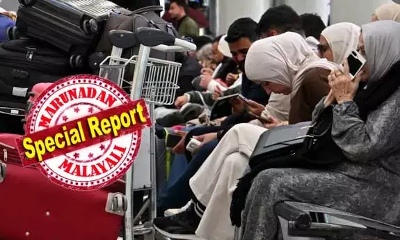 ഇസ്രയേല്, ഖത്തര്, സിറിയ, ഇറാന്, ഇറാഖ്, കുവൈറ്റ്, ബഹ്റെയിന് തുടങ്ങിയ രാജ്യങ്ങള് അവരുടെ വ്യോമപാതകള് അടച്ചതോടെ വഴിയില് യാത്ര മുടങ്ങുകയോ, മറ്റിടങ്ങളിലേക്ക് തിരിച്ചു വിടുകയോ ചെയ്തവരാണ് ഇവരിലധികവും. യു എ ഇയ്ക്ക് മുകളിലൂടെയും വിമാനങ്ങള് പറക്കുന്നില്ല. ദുബായ്, അബുദാബി, ഖത്തര് വിമാനത്താവളങ്ങള് താത്ക്കാലികമായി അടച്ചിടുകയും, ബ്രിട്ടീഷ് എയര്വേയ്സ്, വെര്ജിന് അറ്റ്ലാന്റിക്, എന്നിവരുള്പ്പടെ പല പ്രമുഖ ആഗോള വിമാനക്കമ്പനികളും സര്വ്വീസുകള് റദ്ദാക്കുകയും ചെയ്തതോടെയാണ് ദുരിതം ഏറിയത്. ആയിരക്കനക്കിന് വിമാന സര്വ്വീസുകളാണ് റദ്ദാക്കിയിരിക്കുന്നത്.