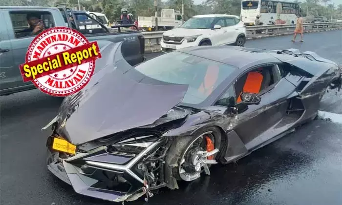 ഒമ്പത് കോടി വിലയുള്ള ലംബോര്ഗിനി റെവുള്ട്ടോ സ്കോര്പിയോയും കൂട്ടിയിടിച്ച് അപകടം