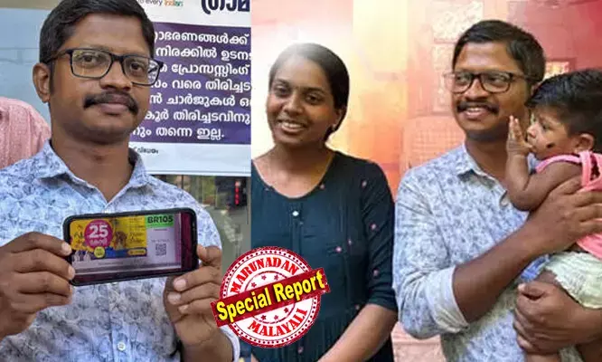 ഇന്നു രാവിലെയും ജോലിയ്ക്കു പോയി; അവധി പറഞ്ഞ് വീട്ടിലെത്തി 25കോടിയുടെ ടിക്കറ്റുമായി ബാങ്കിലേക്ക്; ആ രഹസ്യ വരവില് മാനേജര്ക്ക് അമ്പരപ്പ്; എല്ലാം ആഗ്നേയന്റെ ഐശ്വര്യമെന്ന് ശരത്; അച്ഛന് കോടിപതിയായത് അറിയാതെ ക്യാമറക്കണ്ണുകള് നോക്കി ആ കുഞ്ഞിക്കണ്ണുകള്; തുറവൂര് മണിയാതൃക്കലിലെ ശരതിന്റെ കുടുംബം ആഹ്ലാദത്തിലാണ്