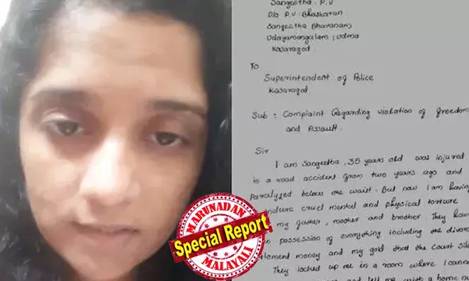 ഉദുമയിലെ സിപിഎം നേതാവ് ഭാസ്കരന്റെ മകള് സംഗീതയാണ് തന്നെ വീട്ടില് പൂട്ടിയിട്ട് പീഡിപ്പിക്കുന്നുവെന്നും, മറ്റൊരു മതത്തില്പ്പെട്ടയാളെ വിവാഹം കഴിക്കാന് അനുവദിക്കുന്നില്ലെന്നും, തന്റെ പണം തട്ടിയെടുക്കാന് പിതാവും സഹോദരനും ശ്രമിക്കുന്നതായും ആരോപിച്ച് കഴിഞ്ഞ ദിവസം ഒരു വീഡിയോ പുറത്തുവിട്ടത്. വാഹനാപകടത്തില് പരിക്കേറ്റ് സംഗീതയുടെ അരയ്ക്കു താഴെ ചലനശേഷി നഷ്ടപ്പെട്ടിരിക്കുകയാണ്.