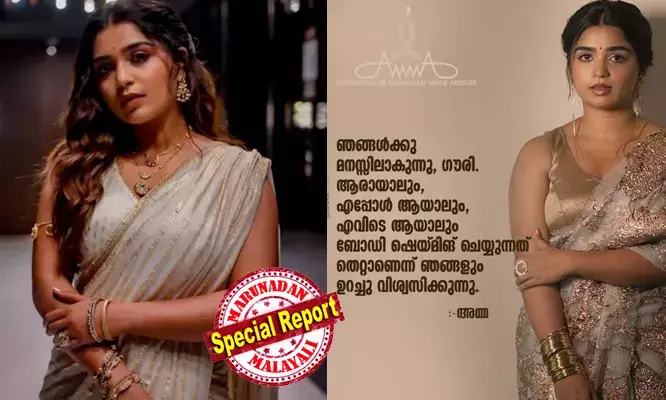 'ഗൗരി നേരിട്ട വേദന മനസ്സിലാക്കുന്നു; 'ആരായാലും എപ്പോളായാലും എവിടെ ആയാലും ബോഡി ഷെയ്മിങ് ചെയ്യുന്നത് തെറ്റ്'; ഗൗരി ജി. കിഷന് പിന്തുണയറിയിച്ച് 'അമ്മ' സംഘടന; നടിക്ക് പിന്തുണയുമായി ചലച്ചിത്രരംഗത്തെ പ്രമുഖര്