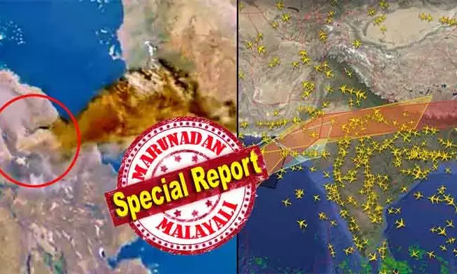 പന്ത്രണ്ടായിരം കൊല്ലത്തിന് ശേഷം എത്യോപ്യയിലെ ഹയ്ലി ഗുബ്ബി അഗ്നിപര്വ്വതം പൊട്ടിത്തെറിച്ചു; തിങ്കളാഴ്ച വൈകുന്നേരത്തോടെ പുക രാജസ്ഥാനിലൂടെ ഇന്ത്യയിലും എത്തി; ഏഷ്യയിലെ വിമാന സര്വ്വീസുകളെ പ്രതിസന്ധിയിലാക്കി ചാര മേഘം; കൊച്ചിയില് നിന്നുള്ള വിമാനങ്ങളെ അടക്കം ബാധിച്ചു; ഗള്ഫിലും വമ്പന് പ്രതിസന്ധി