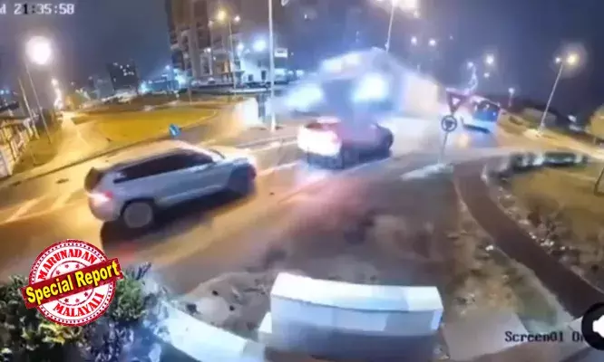 ഡിസംബര് 3-നാണ് സംഭവം നടന്നത്. അതിവേഗത്തില് വന്ന വാഹനം ട്രാഫിക് സര്ക്കിളിന്റെ മധ്യഭാഗത്തെ മതിലില് ഇടിക്കുകയും, ഇടിയുടെ ആഘാതത്തില് റോഡരികിലൂടെയുള്ള വാഹനങ്ങള്ക്ക് മുകളിലൂടെ ഉയര്ന്നു പറക്കുകയും ചെയ്തു. തുടര്ന്ന് പെട്രോള് സ്റ്റേഷന് സമീപമുള്ള ഒരു ഇരുമ്പ് പോസ്റ്റില് ഇടിച്ചു തകര്ന്ന് നിലം പതിച്ചു.