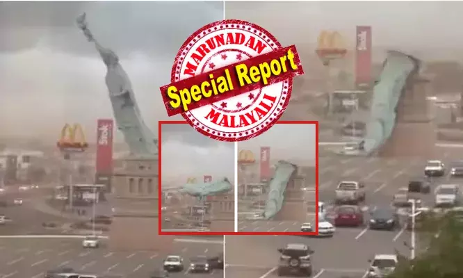 അതിശക്തമായ കൊടുങ്കാറ്റിൽ 'സ്റ്റാച്യു ഓഫ് ലിബർട്ടി' തകർന്നു വീണു?; 114 അടി ഉയരത്തിൽ നിന്ന് നിമിഷനേരം കൊണ്ട് നിലം പതിക്കുന്ന കാഴ്ച; ഒരു പോറൽ പോലുമില്ലാതെ ആളുകൾ രക്ഷപ്പെട്ടത് ഭാഗ്യം കൊണ്ട്; ഒടുവിൽ സത്യാവസ്ഥ അറിഞ്ഞപ്പോൾ ആശ്വാസം