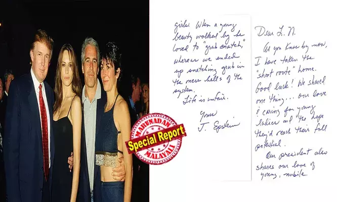 'സുന്ദരികളായ യുവതികളെ കണ്ടാല് ട്രംപിന് ഇളകും; അദ്ദേഹം അവരെ കടന്നുപിടിക്കാന് ഇഷ്ടപ്പെട്ടിരുന്നു! 'ആത്മഹത്യയ്ക്ക് തൊട്ടുമുന്പ് ജെഫ്രി എപ്സ്റ്റീന് എഴുതിയ കത്ത് പുറത്ത്; ബാലപീഡകന്റെ വിമാനത്തില് ട്രംപ് പറന്നത് എട്ടുതവണ! കൊടുംകുറ്റവാളി ലാറി നാസറിന് എപ്സ്റ്റീന് അയച്ച പോസ്റ്റ്കാര്ഡ് ബോംബാകുന്നു; വൈറ്റ് ഹൗസിനെ വിറപ്പിച്ച് പുതിയ രേഖകള്