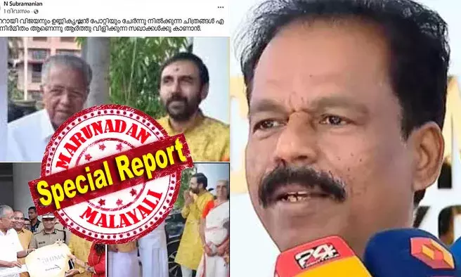 മുഖ്യമന്ത്രിയും ഉണ്ണിക്കൃഷ്ണന് പോറ്റിയും ഒരുമിച്ചുള്ള ചിത്രങ്ങളാണ് എന്.സുബ്രഹ്മണ്യന് സമൂഹമാധ്യമത്തില് പങ്കുവച്ചത്. പിണറായി വിജയനും ഉണ്ണികൃഷ്ണന് പോറ്റിയും തമ്മില് ഇത്രയും അഗാധമായ ബന്ധം ഉണ്ടാകാന് കാരണം എന്തായിരിക്കും എന്ന അടിക്കുറിപ്പുമുണ്ടായിരുന്നു. എന്നാല്, ഇതില് ഒരു ചിത്രം എഐ നിര്മിതമാണെന്ന നിലയിലായിരുന്നു പിന്നീടുള്ള പ്രതികരണങ്ങള്. മുഖ്യമന്ത്രിക്കൊപ്പം പോറ്റി നില്ക്കുന്നതായുള്ള ചിത്രം എഐ ഉപയോഗിച്ചു നിര്മിച്ചതാണെന്നും അതിന്റെ വസ്തുതകള് പുറത്തുവരുമെന്നും സിപിഎം സംസ്ഥാന സെക്രട്ടറി എം വി ഗോവിന്ദന് പറഞ്ഞിരുന്നു. പിന്നീട് ആ ചടങ്ങിന്റെ വീഡിയോ പുറത്തു വന്നിരുന്നു.