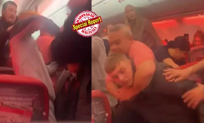 ആകാശത്ത് തല്ലുമാല! പല്ല് അടിച്ചുകൊഴിച്ചു, ചോര ചിതറി; മദ്യപന്മാരുടെ അഴിഞ്ഞാട്ടത്തില് തുര്ക്കി-മാഞ്ചസ്റ്റര് വിമാനം അടിയന്തരമായി നിലത്തിറക്കി; 30 വര്ഷത്തെ കരിയറില് ഇങ്ങനൊന്ന് കണ്ടിട്ടില്ലെന്ന് പൈലറ്റ്; ഗുണ്ടായിസം കാണിച്ചവര്ക്ക് പണികൊടുത്ത് ബെല്ജിയം പോലീസ്; കൂട്ടത്തല്ലിന് കാരണം ഇങ്ങനെ