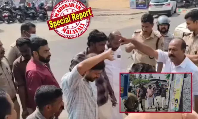'ഇവിടെ ഒരുപാട് പേര് പരിപാടി നടത്തിയല്ലോ, സാറുമാര്ക്ക് എന്താ പറ്റിയത്. ഒരു മണിക്കൂര് കഴിഞ്ഞാല് ഇവിടെ ആളുകള് വന്ന് പോകും. നിങ്ങളീ തോന്ന്യാസം കാണിച്ചാല് നടപ്പില്ല. ഇത് ആരെടുത്താലും ശരിയാ... ഞങ്ങള് ഈ വണ്ടിയുടെ മുമ്പില് കിടക്കും. ഒരാളെ തൊട്ടാല് ഞങ്ങള് കാണിച്ചുതരാം. ഇന്നലെ 16 പേരെ നിര്ത്തി പണിത സാധനങ്ങള് ഇവിടുന്ന് എടുത്തു കൊണ്ടുപോയി. ഞങ്ങള് ക്ഷമിച്ചു. ഒരു മര്യാദ വേണ്ടേ? ഒരു മണിക്കൂറിനുള്ളില് ഒരു പരിപാടി നടക്കുമ്പോള് ഇതെന്താ? നിങ്ങള് കേസ് എടുത്തോ. എന്ത് വേണമെങ്കിലും ചെയ്തോ. കേസ് എടുക്കുമെന്നല്ലേ പറഞ്ഞത്? അതൊന്നുമല്ല, നിങ്ങളീ റോഡില് ഈ അഞ്ചുമണി ആറുമണി കഴിഞ്ഞാല് തോന്ന്യാസം നടപ്പില്ല. നിങ്ങള് എന്നിട്ട് എടുക്കോ, കേസ് എടുക്കോ എന്ത് വേണമെങ്കിലും ചെയ്തോ. കഴിഞ്ഞ ആഴ്ചയും ഇവിടെ പണി നടന്നതാ പല പാര്ട്ടികളും... പക്ഷേ ആരും ഈ വിഷയം ഉണ്ടായിട്ടില്ല. കമ്മ്യൂണിസ്റ്റുകാരായ ഉദ്യോഗസ്ഥര് ഇവിടെയിരുന്നുകൊണ്ട് വേഷം കെട്ടി ഞങ്ങളുടെ അടുത്ത് കാണിക്കരുത്.