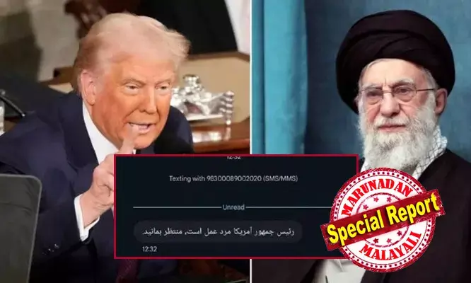 'അമേരിക്കന് പ്രസിഡന്റ് പറഞ്ഞാല് അത് പ്രവര്ത്തിക്കുന്ന ആളാണ്. കാത്തിരുന്നു കാണുക' ഇതൊരു സിനിമാ ഡയലോ ഗോ, താന് വലിയ സംഭവമാണെന്ന് തെളിയിക്കാന് ട്രംപ് പ്രസം ഗത്തില് പറഞ്ഞ മാസ് ഡയലോ ഗോ ഒന്നുമല്ല. ഇന്ന് ഇറാനിലെ ആയിരക്കണക്കിന് മൊബൈല് ഫോണ് ഉപയോക്താക്കള്ക്ക് തങ്ങളുടെ മൊബൈല് നമ്പറിലേക്ക് ലഭിച്ച അജ്ഞാത സന്ദേശമാണിത്. അജ്ഞാത നമ്പറില് നിന്ന് ലഭിച്ച ആ സന്ദേശം. ഡൊണാള്ഡ് ട്രംപും ഇറാനും തമ്മിലുള്ള സംഘര്ഷം മുറുകുന്നതിനിടെയാണ് ഈ സന്ദേശം പ്രത്യക്ഷപ്പെട്ടത്. ഇറാന്റെ നേതൃത്വത്തിനെതിരെയുള്ള വാക്പോരാട്ടം ശക്തമാക്കിയ യുഎസ് പ്രസിഡന്റ്, മിഡില് ഈസ്റ്റിലുടനീളം അമേരിക്കന് സൈനിക സന്നാഹങ്ങള് വര്ദ്ധിപ്പിക്കുകയും ചെയ്തിട്ടുണ്ട്. ഇപ്പോള് ഇത്തരത്തിലുള്ള ഒരു ഭീഷണി സന്ദേശം കൂടി ലഭിച്ചതോടെ ഇറാനെതിരെയുള്ള ഒരു മിസൈല് ആക്രമണത്തിന്റെ സാധ്യതയെക്കുറിച്ചുള്ള ഊഹാപോഹങ്ങള്ക്ക് ആക്കം കൂട്ടിയിരിക്കുകയാണ്. ഇറാന് ഭരണകൂടത്തിന് നേരെ അമേരിക്കന് പ്രസിഡന്റ് ഡൊണാള്ഡ് ട്രംപ് ആക്രമണ ഭീഷണി മുഴക്കുന്നതിനിടെയാണ് ഈ സന്ദേശങ്ങള് എത്തിയത് എന്നത് ശ്രദ്ധേയമാണ്. ഇതോടെ ആസന്നമായൊരു സൈനികനീക്കത്തിന്റെ പ്രതീതി ഇറാനിലെങ്ങും പരന്നുതുടങ്ങി.