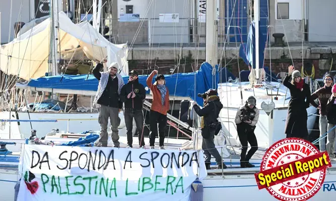 ഫലസ്തീന് ഐക്യദാര്ഢ്യത്തിന്റെ മറവില് കള്ളപ്പണം വെളുപ്പിക്കലോ? ഗ്രേറ്റ തന്ബെര്ഗ് പിന്തുണച്ച 'ഗ്ലോബല് സുമൂദ്' ഫ്ലോട്ടില പ്രവര്ത്തകര് കുടുങ്ങി! ഭീകരവിരുദ്ധ നിയമപ്രകാരം ഏഴ് പേര് തടങ്കലില്; വായേല് നൗവറും ഭാര്യയും ഉള്പ്പെടെയുള്ളവര് അകത്ത്; ടുണീഷ്യന് ഭരണകൂടത്തിന്റെ അപ്രതീക്ഷിത നീക്കത്തില് ഞെട്ടി ആക്ടിവിസ്റ്റുകള്!