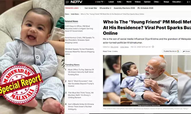 കേരളത്തില് നിന്നുള്ള ഒരു കുടുംബത്തിന് പ്രധാനമന്ത്രി നല്കിയ ഈ വലിയ സ്വീകരണം ദേശീയ ശ്രദ്ധ നേടിക്കഴിഞ്ഞു. നിയോം അഥവാ 'ഓമി' എന്ന ഈ കുഞ്ഞ് പ്രധാനമന്ത്രിയുടെ വസതിയിലെ ഏറ്റവും പ്രായം കുറഞ്ഞ അതിഥികളില് ഒരാളായി മാറി.