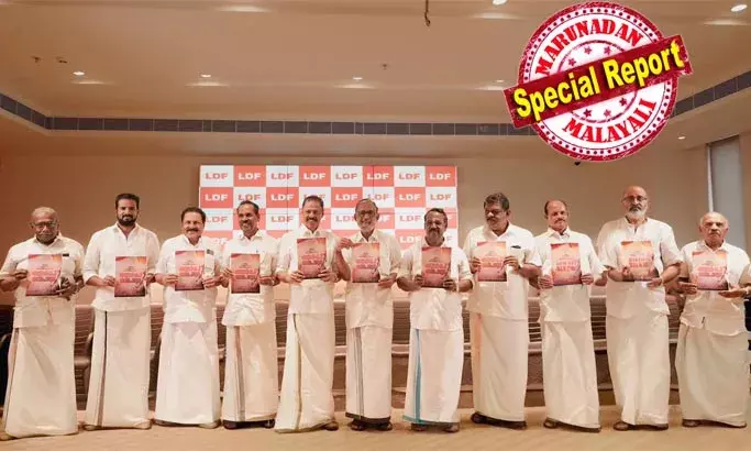 ഇന്നാണ് എല്ഡിഎഫിന്റെ പ്രകടന പത്രിക പുറത്തിറക്കിയത്. എകെജി സെന്ററില് നടന്ന ചടങ്ങില് സിപിഎം സംസ്ഥാന സെക്രട്ടറി എം വി ഗോവിന്ദന്, എല്ഡിഎഫ് കണ്വീനര് ടി പി രാമകൃഷ്ണന്, സിപിഐ നേതാവ് സത്യന് മൊകേരി, ഉഴമലയ്ക്കല് വേണുഗോപാല്, എംഎല്എ ആന്റണി രാജു, അഹമ്മദ് ദേവര്കോവില്, മാത്യു ടി തോമസ് തുടങ്ങിയവരാണ് പങ്കെടുത്തത്. ഈ കൂട്ടത്തില് ഒന്നും തന്നെ ഒരു വനിതയുടെ സാന്നിധ്യം ഉണ്ടായില്ല. ഇതാണ് സോഷ്യല് മീഡിയയില് വിമര്ശനം ഉയരാന് ഇടയാക്കിയത്.