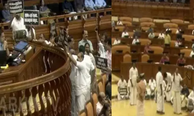 സഭാ നടപടികളുമായി സഹകരിക്കില്ലെന്ന് പ്രഖ്യാപിച്ച പ്രതിപക്ഷം നടുത്തളത്തിലിറങ്ങി മുദ്രാവാക്യം വിളിക്കുകയും പ്രതിഷേധിക്കുകയും ചെയ്തു.