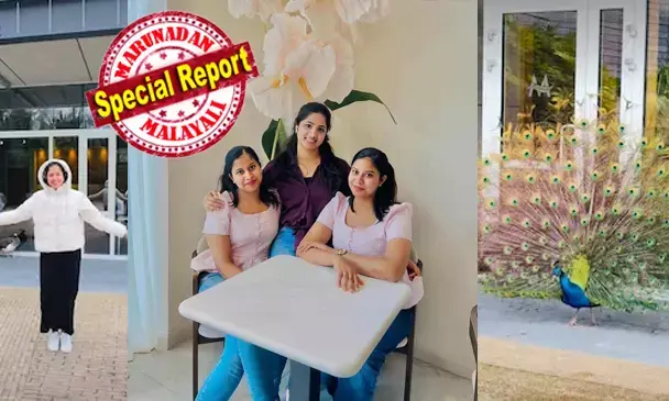 രണ്ട് ദിവസം മുന്പ് സുഹൃത്തുക്കളായ ഹെല്ത്ത് കെയര് അസിസ്റ്റന്റായി ജോലി ചെയ്യുന്ന ജെനി മേരി വര്ഗീസും, ജിനു ആനി ജിജോയും, ജെനി ആനി ജിജോയും മലാഹൈഡ് കാസില് (ങമഹമവശറല ഇമേെഹല) സന്ദര്ശിച്ചിരുന്നു. കോട്ടയ്ക്കകത്തെ കാഴ്ചകളെല്ലാം കണ്ട് ആസ്വദിച്ച് ഗാര്ഡന് കാണാനിറങ്ങിയപ്പോള് മുന്നില് ഒരു ആണ് മയിലും രണ്ട് പെണ്മയിലും നില്ക്കുന്നു. ആ ഭംഗിയുള്ള കാഴ്ച കണ്ട് അവര് അതിന്റെ പുറകെ പതിയെ നടന്നു. ഈ സമയം ജെനി ആനി ജിജോ വീഡിയോ പകര്ത്തുന്നുണ്ടായിരുന്നു. ഒരു തമാശ രീതിയില് ആണ് മയിലിനെ നോക്കി ജെനി മേരി വര്ഗ്ഗീസും ജിനു ആനി ജിജോയും പീലി വിടര്ത്താമോ എന്ന് ആഗ്യ ഭാഷയില് ചോദിച്ചു കൊണ്ടിരുന്നു.