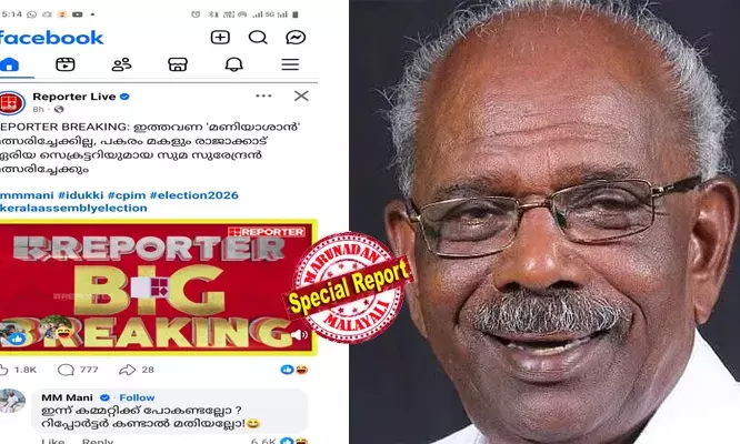 റിപ്പോര്ട്ടര് ടിവി ബിഗ് ബ്രേക്കിങ്ങിന്റെ താഴെ സാക്ഷാല് മണിയാശാന് തന്നെ കമന്റുമായി എത്തി. ' ഇന്ന് കമ്മിറ്റിക്ക് പോകണ്ടല്ലോ? റിപ്പോര്ട്ടര് കണ്ടാല് മതിയല്ലോ എന്നായിരുന്നു സ്മൈലിയുടെ അകമ്പടിയോടെ എം എം മണിയുടെ കമന്റ്.