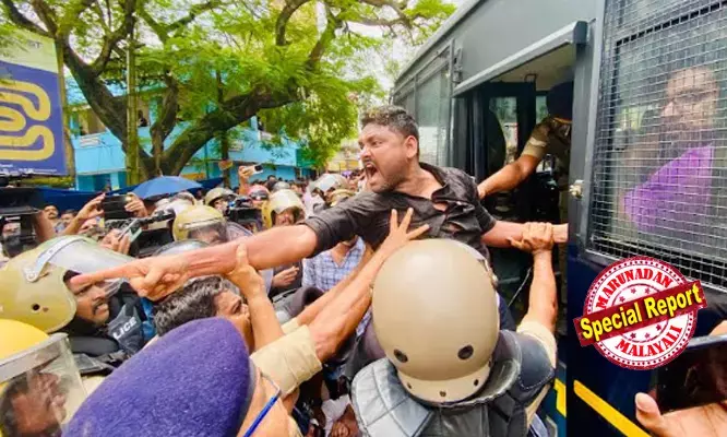 ഇതോടെ പോലിസും നിയന്ത്രണം വിട്ടു. ഇതിനിടെ സന്ദീപ് വാര്യര് ഉള്പ്പെടെ നിരവധി പ്രവര്ത്തകര്ക്ക് ലാത്തിയടിയേറ്റു. പ്രവര്ത്തകരെ അറസ്റ്റു ചെയ്തു വാനില് കയറ്റാന് ശ്രമിച്ചപ്പോള് പ്രതിഷേധം ഉയരുകയും തടയുകയും ചെയ്തു. പിന്നീട് മര്ദ്ദനത്തില് പ്രതിഷേധിച്ച് പ്രവര്ത്തകര് മിനി സിവില് സ്റ്റേഷന് മുന്നില് റോഡില് കുത്തിയിരുന്നു. ഇതു വഴിയുള്ള വാഹന ഗതാഗതവും തടസപ്പെട്ടു. തുടര്ന്ന് ഒരു മണിയോടെ യൂത്ത് കോണ്ഗ്രസ് പ്രവര്ത്തകരെ അറസ്റ്റ് ചെയ്ത് പോലിസ് വാനില് കയറ്റി സ്റ്റേഷനിലേക്ക് കൊണ്ടുപോയി.