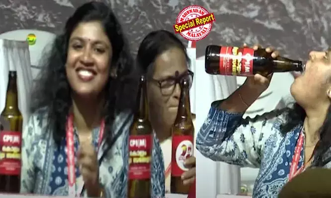 തവിട്ടുനിറത്തിലുള്ള ചില്ലുകുപ്പിയില് എന്താണ്? സിപിഎം കൊല്ലം ജില്ലാ സമ്മേളന വേദിയില് വിതരണം ചെയ്ത 'കുപ്പി'യില് അഭ്യൂഹം; കരിങ്ങാലി വെള്ളകുപ്പി കാണുമ്പോള് ബിയറാണെന്നു തോന്നുന്നവരുടെ മനോനില പരിശോധിക്കണം: കുറിപ്പുമായി ചിന്ത ജെറോം