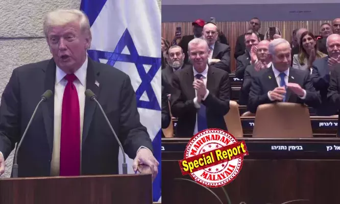 ടെല് അവീവ്: ഗാസ സമാധാന ഉച്ചകോടിയില് പങ്കെടുക്കുന്നതിന് മുമ്പായി ഇസ്രയേലില് എത്തിയ അമേരിക്കന് പ്രസിഡന്റ് ഡോണള്ഡ് ട്രംപ് ഇസ്രയേല് പാര്ലമെന്റിനെ അഭിസംബോധന ചെയ്ത് സംസാരിച്ചു. ഇസ്രയേല് പ്രധാനമന്ത്രി ബെഞ്ചമിന് നെതന്യാഹുവുമായി കൂടിക്കാഴ്ച നടത്തിയതിന് ശേഷമാണ് ട്രംപ് പാര്ലമെന്റിലെത്തിയത്. ദൈവത്തിന് നന്ദി പറയേണ്ട ദിവസമാണ് ഇതെന്ന് പറഞ്ഞുകൊണ്ടാണ് ട്രംപ് സംസാരിച്ചത്. ഇസ്രയേല് പാര്ലമെന്റ് ഒന്നടങ്കം എഴുന്നേറ്റ് നിന്ന് കയ്യടികളോടെയാണ് ട്രംപിനെ സ്വീകരിച്ചത്. മിഡില് ഈസ്റ്റ് എന്നന്നേക്കും സമാധാനത്തില് ജീവിക്കുമെന്നും തീവ്രവാദവും മരണവും അവസാനിച്ചു. ഇനിയുള്ള കാലം പ്രതീക്ഷകളുടെയും സമാധാനത്തിന്റെയുമാണെന്നും ട്രംപ് പറഞ്ഞു. കൂടാതെ ഇസ്രയേലിന്റേയും മിഡില് ഈസ്റ്റിന്റെയും സുവര്ണ കാലമാണ് വരുന്നതെന്ന് പറഞ്ഞ ട്രംപ് ഇസ്രയേല് പാര്ലമെന്റില് നെതന്യാഹുവിനെ പുകഴ്ത്തുകയും ചെയ്തു. യുദ്ധങ്ങള് ഉണ്ടാക്കുന്നതല്ല അവസാനിപ്പിക്കുന്നതാണ് തന്റെ വ്യക്തിത്വം എന്ന് പറഞ്ഞ ട്രംപ് ഒക്ടോബര് ഏഴിലുണ്ടായ ആക്രമണത്തില് അമേരിക്ക ഇസ്രയേലിന് ഒപ്പം നിന്നു എന്നും വ്യക്തമാക്കി.