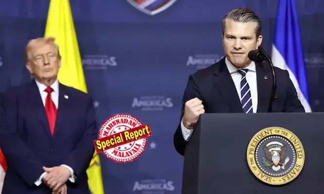 യുദ്ധക്കളത്തില് ഇറാന് ഇപ്പോള് തീര്ത്തും ഒറ്റപ്പെട്ടിരിക്കുകയാണ്. ലോകരാജ്യങ്ങളുടെ പിന്തുണയില്ലാത്തതിനാല് ഇറാന് അക്ഷരാര്ത്ഥത്തില് അങ്കലാപ്പിലാണെന്നും യുദ്ധത്തില് അവര് ദയനീയമായി പരാജയപ്പെട്ടുകൊണ്ടിരിക്കുകയാണെന്നും ഹെഗ്സെത്ത് ഓര്മ്മിപ്പിച്ചു. ട്രംപിന്റെ കരുത്തുറ്റ സൈനിക നീക്കങ്ങള്ക്ക് മുന്നില് ഇറാന് മുട്ടുമടക്കുന്ന കാഴ്ചയാണ് പശ്ചിമേഷ്യയില് നിന്നുള്ള റിപ്പോര്ട്ടുകള് സൂചിപ്പിക്കുന്നത്.