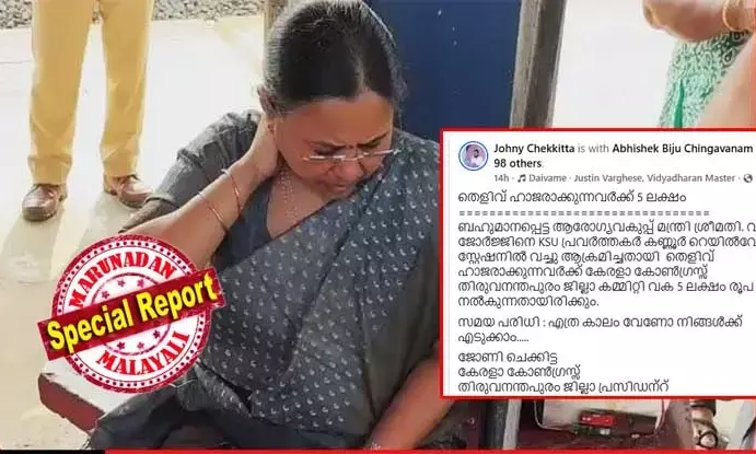 വീണ ജോര്ജ്ജിനെ കെ.എസ്.യുക്കാര് ആക്രമിച്ചതിന്റെ ദൃശ്യങ്ങള് ഹാജറാക്കുന്നവര്ക്ക് അഞ്ചു ലക്ഷം നല്കുമെന്ന് കേരളാ കോണ്ഗ്രസ് നേതാവ്; ഒരു പവന് സ്വര്ണം നല്കാമെന്ന് യൂത്ത് കോണ്ഗ്രസ്; കുഴിമന്തി ഓഫര് ചെയ്തു കെ.എസ്.യുവും; വീണ ജോര്ജ്ജിനെ പരിഹസിച്ചു യുഡിഎഫുകാര്; സോഷ്യല് മീഡിയയില് കള്ളം പൊളിച്ചു പോസ്റ്റുകളും