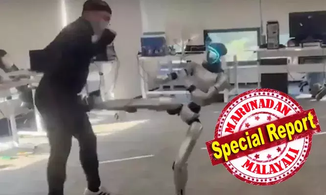 ചലനങ്ങൾ അനുകരിക്കുന്നതിനിടെ ഒരു ഹ്യൂമനോയിഡ് റോബോട്ട് യുവാവിനെ ജനനേന്ദ്രിയത്തിൽ ചവിട്ടുന്നതിന്റെ ദൃശ്യങ്ങൾ സമൂഹമാധ്യമങ്ങളിൽ വൈറലായിരിക്കുകയാണ്. വേദന കൊണ്ട് കുനിഞ്ഞുപോയ യുവാവിനെ റോബോട്ടും അതേപടി അനുകരിക്കുന്നതും വീഡിയോയിലുണ്ട്. സാങ്കേതികവിദ്യ മനുഷ്യന് തന്നെ അപ്രതീക്ഷിതമായി തിരിച്ചടിയാകുന്നതിന്റെ തമാശ നിറഞ്ഞ രൂപകമായി ഈ സംഭവം വ്യാപകമായി ചർച്ചയാവുകയാണ്.