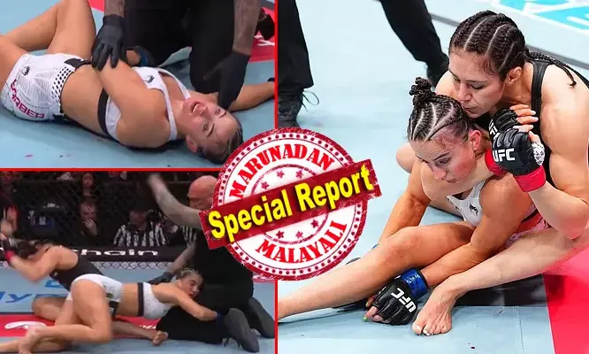 മുഖത്തേറ്റ ശക്തമായ പഞ്ചിൽ റിങിൽ ബോധരഹിതയായി വീണ 'ഫൈറ്റർ'; ബോധം പോയ താരത്തെ കഴുത്തിന് പിടിമുറുക്കി 'ചോക്ക് ഹോൾഡ്' ചെയ്ത് എതിരാളി; ആത്മാവ് നഷ്ടപ്പെട്ടതുപോലെ ആ 45 സെക്കൻഡുകൾ; കാണികളെയും ഭീതിയിലാഴ്ത്തിയ നിമിഷങ്ങൾ; യുഎഫ്സി ചരിത്രത്തിൽ ഇടം നേടിയ ആ നോക്കൗട്ടിൽ സംഭവിച്ചത്