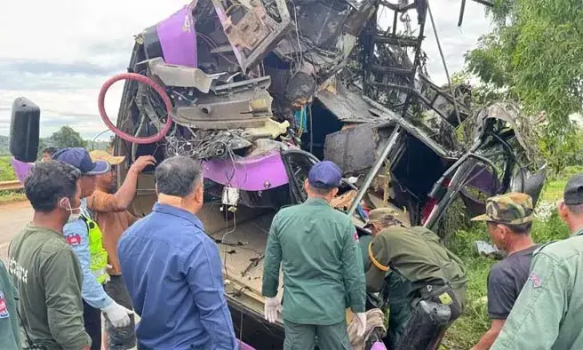 കംബോഡിയയില് വിനോദസഞ്ചാര കേന്ദ്രത്തില് ബസ് നദിയിലേക്ക് മറിഞ്ഞ് അപകടം; 16 യാത്രക്കാര് മരിച്ചു