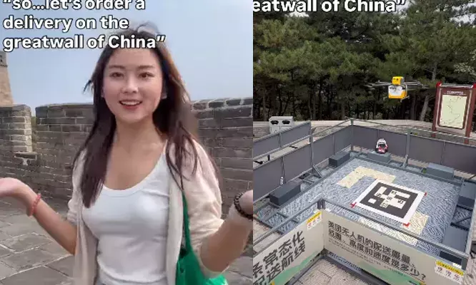 വൻമതിൽ കാണാൻ പോയ ഒരു പെൺകുട്ടിയാണ് ഡ്രോൺ ഫുഡ് ഡെലിവറിയുടെ ദൃശ്യങ്ങൾ പങ്കുവെച്ചിരിക്കുന്നത്. 'എനിക്ക് ഭയങ്കരമായി വിശക്കുന്നു. അപ്പോൾ നമുക്ക് ചൈനയിലെ വൻമതിലിൽ ഒരു ഡെലിവറി ഓർഡർ ചെയ്യാം' എന്ന് പെൺകുട്ടി പറയുന്നു. ഡെലിവറി ലാൻഡിംഗ് പാഡിലേക്ക് ഒരു ഡ്രോൺ ഭക്ഷണവുമായി പറന്നുവരുന്നത് വീഡിയോയിൽ കാണാം. വിനോദസഞ്ചാരികൾക്ക് ഭക്ഷണം, പാനീയങ്ങൾ, മറ്റ് അവശ്യവസ്തുക്കൾ എന്നിവ നേരിട്ട് ഓർഡർ ചെയ്യാൻ സാധിക്കും. ഇതിനായി പ്രത്യേക ലാൻഡിംഗ് പാഡ് സജ്ജീകരിച്ചിട്ടുണ്ട്.