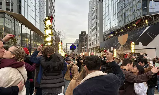 മുൻപ് നിലവിലുണ്ടായിരുന്ന 480 ദമ്പതികളുടെ റെക്കോർഡിനേക്കാൾ മൂന്നിരട്ടിയോളം ദമ്പതികളാണ് ഈ സ്നേഹനിമിഷത്തിൽ പങ്കെടുത്തത്. ഡൗൺ ടൗൺ വാഷിംഗ്ടണിൽ ഏകദേശം 30 അടി ഉയരത്തിൽ സ്ഥാപിച്ച 10 അടി വീതിയുള്ള, മനോഹരമായി അലങ്കരിച്ച ഭീമാകാരമായ മിസ്റ്റ്ലെറ്റോ ഇൻസ്റ്റാളേഷന് താഴെയായിരുന്നു ഈ കൂട്ട ചുംബനം.