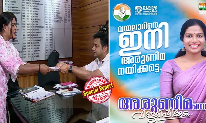കെഎസ്യു ജനറല് സെക്രട്ടറിയും ട്രാന്സ്ജെന്ഡര് കോണ്ഗ്രസ് സംസ്ഥാന രക്ഷാധികാരിയുമാണ് അരുണിമ എം കുറുപ്പ്.അരുണിമയുടെ സ്ഥാനാര്ത്ഥിത്വവുമായി ബന്ധപ്പെട്ട് പല തരത്തിലുളള പ്രചാരണങ്ങള് പുറത്തുവന്നിരുന്നു. രേഖകളിലെല്ലാം സ്ത്രീ എന്നാണ് രേഖപ്പെടുത്തിയിരിക്കുന്നത് എന്നാണ് അരുണിമ പ്രതികരിച്ചത്. ആലപ്പുഴ ജില്ലാ പഞ്ചായത്തിന് കീഴില് വനിതാ സംവരണ സീറ്റാണ് വയലാര് ഡിവിഷന്.