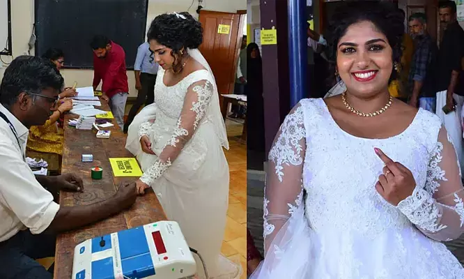 വിവാഹ ചടങ്ങിന്റെ തിരക്കുകള്ക്കിടെ നവവധു പോളിംഗ് ബൂത്തിലേക്ക്; വിവാഹ വേഷത്തില് എത്തി വോട്ടിട്ട് അഖിലയും ആശയും; നവവധു വോട്ട് ചെയ്യാനെത്തിയത് മേപ്പാടിയിലും അടൂരിലും