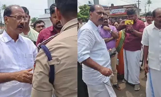 ഡിജിപിക്ക് മുകളിലാണ് തന്റെ റാങ്കെന്നും തിരഞ്ഞെടുപ്പ് ഇന്നത്തോടെ അവസാനിക്കുമെന്നും എംഎല്എ ഭീഷണി മുഴക്കി. 'എടോ' എന്ന് വിളിച്ചാണ് പോലീസ് ഉദ്യോഗസ്ഥനോട് എംഎല്എ സംസാരിച്ചത്. നിയമം തെറ്റിച്ചതിനെ തുടര്ന്നാണ് ഈ നടപടിയെന്നും അങ്ങനെ പേടിച്ചൊന്നുമല്ല ജീവിക്കുന്നതെന്നും പോലീസ് ഉദ്യോഗസ്ഥന് എംഎല്എയോട് പറയുന്നതും ദൃശ്യങ്ങളിലുണ്ട്.