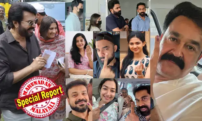 അമേരിക്കയിലേക്ക് പറക്കുംമുമ്പെ വോട്ടിടാന് മുടവന്മുഗള് സ്കൂളിലെത്തി മോഹന്ലാല്; ചെന്നൈയില് നിന്നും കൊച്ചിയില് പറന്നിറങ്ങി മമ്മൂട്ടിയും; സുരേഷ് ഗോപി വോട്ട് ചെയ്തത് ഗുരുവായൂരില്; കുടുംബത്തിനൊപ്പം പൃഥ്വിരാജും ടൊവിനോയും; തെലുങ്ക് ചിത്രത്തിന്റെ സെറ്റില് നിന്ന് ഫഹദ്; ചാക്കോച്ചനും ആലപ്പുഴയില്; സ്റ്റാര് ബൂത്തായി സെന്റ് സെബാസ്റ്റ്യന്സ് എല് പി സ്കൂള്