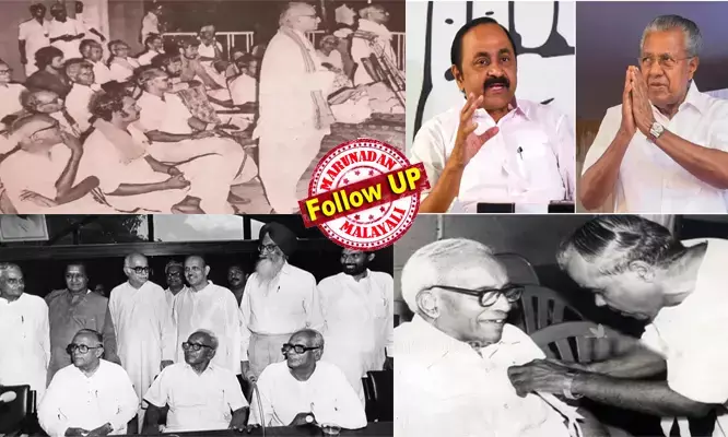 1977 ല് ആര്.എസ്.എസിന്റെ പിന്തുണയില് മത്സരിച്ച് നിയമസഭയില് എത്തിയ എം.എല്.എ പിണറായി വിജയനാണ്, അല്ലാതെ വി.ഡി സതീശനല്ല. അന്ന് ഉദുമയിലെ സി.പി.എം- ആര്.എസ്.എസ് സംയുക്ത സ്ഥാനാര്ത്ഥിയായിരുന്നില്ലേ ആര്.എസ്.എസ് നേതാവ് കെ.ജി മാരാര്? അതേ കെ.ജി മാരാര് ഇ.എം.എസിന് ബാഡ്ജ് കുത്തിക്കൊടുക്കുന്ന ചിത്രം ഇപ്പോഴും ലഭ്യമാണെന്നതും മറക്കരുത്. പാലക്കാട് മത്സരിച്ച സി.പി.എം സ്ഥാനാര്ത്ഥി ശിവദാസ മേനോന്റെ പ്രചരണ പരിപാടിയില് മുതിര്ന്ന ബി.ജെ.പി നേതാവ് എല്.കെ അദ്വാനി പങ്കെടുത്തതും പിണറായി വിജയന് നിഷേധിക്കുമോ? 1989 ല് കോണ്ഗ്രസിനെ അട്ടിമറിക്കാന് വി.പി സിംഗിന് പിന്തുണ നല്കിക്കൊണ്ട് സി.പി.എം നേതാക്കളായ ഇ.എം.എസും ജോതിബസുവും അദ്വാനിക്കും വാജ്പേയ്ക്കും ഒപ്പം നില്ക്കുന്ന ചിത്രങ്ങളും ഗൂഗിളില് പരതിയാല് കിട്ടും. ഈ വിപ്ലവ പാരമ്പര്യങ്ങളൊക്കെ മറച്ചുവച്ചു കൊണ്ടാണ് ആര്.എസ്.എസിനോട് ഒരു ഘട്ടത്തിലും സന്ധി ചെയ്തിട്ടില്ലെന്നും വര്ഗീയതയെ ഒറ്റപ്പെടുത്താന് ശ്രമിച്ചെന്നും പിണറായി വിജയന് പറയുന്നത്.