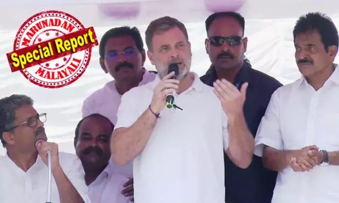 ''എനിക്കെതിരെ 36 കേസുകളുണ്ട്. ബിജെപി എന്നെ ആക്രമിക്കുകയാണ.് 55 മണിക്കൂര് ഇടതടവില്ലാതെ എന്നെ ചോദ്യം ചെയ്തിട്ടുണ്ട്. കേരളത്തിന്റെ മുഖ്യമന്ത്രിയ്ക്കെതിരെ ബിജെപിയുടെ ഒരു ആക്രമണവും നടക്കുന്നില്ല. എല്ഡിഎഫ് നേതൃത്വം അഴിമതിക്കാരാണ്. എല്ഡിഎഫ് സര്ക്കാര് ബിജെപി നിയന്ത്രണത്തിലാണ്. പ്രധാനമന്ത്രി എവിടെ പോയാലും മതത്തെപ്പറ്റിയും ദൈവത്തെപ്പറ്റിയും പറയും. പക്ഷേ ഇന്നലെ കേരളത്തില് വന്നപ്പോള് ശബരിമലയെപ്പറ്റി അദ്ദേഹം മറന്നുപോയി. കേരളത്തിലെ ഇടതുപക്ഷ നേതാക്കള് അയ്യപ്പന്റെ സ്വര്ണം കവര്ന്നത്. സിപിഎമ്മിനെ രക്ഷിക്കാന് ശബരിമലക്കൊള്ള പ്രധാനമന്ത്രി മറച്ചുവയ്ക്കുകയാണ്'' രാഹുല് ഗാന്ധി പറഞ്ഞു.