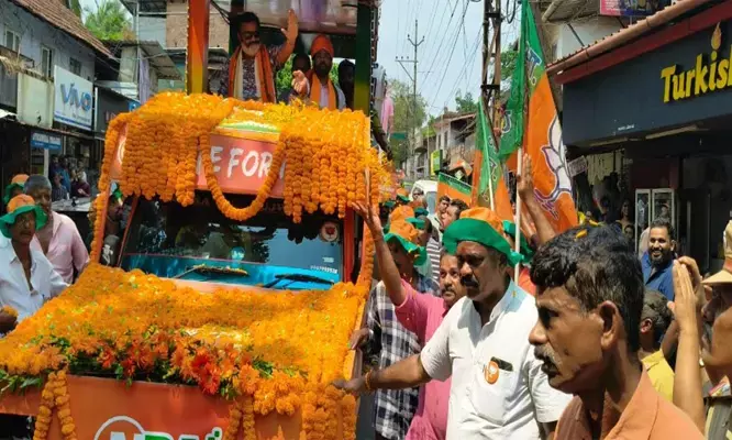 പ്രത്യേകം സജ്ജമാക്കിയ തുറന്ന വാഹനത്തില് സുരേഷ് ഗോപി എത്തിയതോടെ പ്രവര്ത്തകര് ആവേശത്തിലായി. ബാന്ഡ് വാദ്യങ്ങളും വര്ണ്ണക്കുടകളും വാദ്യമേളങ്ങളുമായി നടന്ന പ്രകടനം പിണറായി ടൗണിലെ പെട്രോള് പമ്പ് പരിസരത്താണ് സമാപിച്ചത്. പാതയോരങ്ങളില് തടിച്ചുകൂടിയ നൂറുകണക്കിന് ജനങ്ങളെ കൈവീശി കാണിച്ചും വോട്ടഭ്യര്ത്ഥിച്ചുമാണ് സുരേഷ് ഗോപി മുന്നോട്ട് നീങ്ങിയത്.