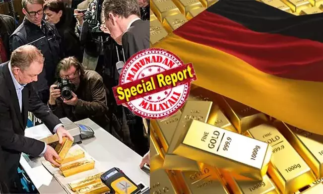 രണ്ടാം ലോക യുദ്ധകാലത്ത് സോവിയറ്റ് യൂനിയന് ജര്മനി പിടിച്ചെടുത്തതിന് പിന്നാലെയാണ് സ്വര്ണത്തിന്റെ കരുതല് ശേഖരം യു.എസിലേക്ക് മാറ്റിയത്. എന്നാല്, 2008ലെ സാമ്പത്തിക മാന്ദ്യത്തിന് പിന്നാലെ കരുതല് സ്വര്ണം ഇനിയും യു.എസില് സൂക്ഷിക്കേണ്ടതില്ലെന്നും തിരിച്ചുകൊണ്ടുവരണമെന്നും ജര്മന് രാഷ്ട്രീയ നേതാക്കള്ക്കിടയില് അഭിപ്രായം ഉയര്ന്നു. 2013 മുതല് ജര്മനിയുടെ കേന്ദ്ര ബാങ്കായ ബുന്ഡെസ് ബാങ്ക് വിദേശത്ത് സൂക്ഷിച്ചിരുന്ന സ്വര്ണത്തിന്റെ വലിയൊരു ഭാഗം തിരിച്ചുകൊണ്ടുവരാനുള്ള ശ്രമം തുടങ്ങി. അതിന്റെ ഫലമായി ന്യൂയോര്ക്കില്നിന്ന് 300 ടണ് സ്വര്ണം തിരിച്ചുവാങ്ങി. പാരീസില്നിന്ന് 374 ടണും തിരിച്ചെത്തിച്ചു.