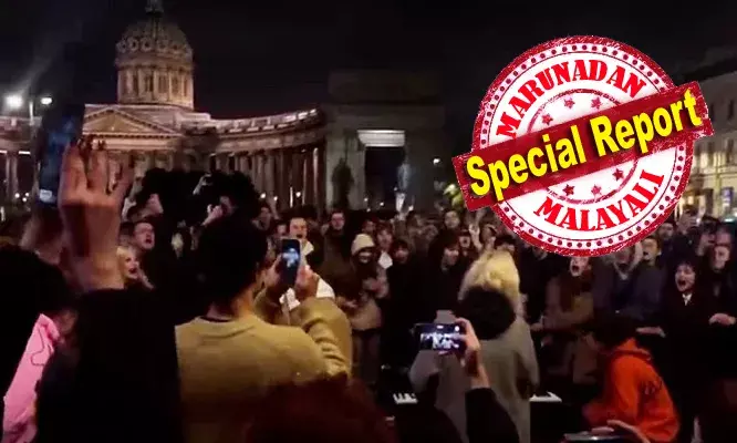 'വൃദ്ധൻ സിംഹാസനത്തിൽ മുറുകെ പിടിക്കുന്നു, വിട്ടുകൊടുക്കാൻ ഭയക്കുന്നു..'; യുക്രെയ്നിനെതിരെയുള്ള യുദ്ധത്തിൽ പ്രതിഷേധിച്ച് യുദ്ധവിരുദ്ധ ഗാനങ്ങൾ ആലപിച്ച് നൂറുകണക്കിന് ആളുകൾ; സെന്റ് പീറ്റേഴ്സ്ബർഗിലെ കസാൻസ്കായ സ്ക്വയറിൽ കണ്ടത് പുടിനെതിരെയുള്ള ജനരോഷം