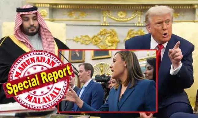 സൗദി കിരീടാവകാശിയുടെ നേരെ തിരിഞ്ഞുകൊണ്ട് ട്രംപ് പറഞ്ഞു, 'അദ്ദേഹത്തിന് ഇതേക്കുറിച്ച് ഒന്നും അറിയില്ലായിരുന്നു, നമുക്ക് അത് അവിടെ നിര്ത്താം.' ചോദ്യമുയര്ത്തിയ മാധ്യമ പ്രവര്ത്തകയെ ട്രംപ് ശകാരിക്കുകയും ചെയ്തു. എബിസി ന്യൂസ് റിപ്പോര്ട്ടര് മേരി ബ്രൂസിനെ രൂക്ഷമായി വിമര്ശിക്കുകയും നെറ്റ് വര്ക്കിന്റെ പ്രക്ഷേപണ ലൈസന്സ് റദ്ദാക്കുമെന്ന് ഭീഷണിപ്പെടുത്തുകയും ചെയ്തു. വൈറ്റ് ഹൗസിലെ ഓവല് ഓഫീസില് സൗദി കിരീടാവകാശി മുഹമ്മദ് ബിന് സല്മാനുമായുള്ള കൂടിക്കാഴ്ചയ്ക്കിടെയായിരുന്നു ഈ നാടകയീ രംഗങ്ങള്. ട്രംപിന്റെ ശകാരവും പരിഹാസവുമൊന്നും വകയവക്കാതെ ചോദ്യങ്ങളുമായി മേരി ബ്രൂസ് മുമ്പോട്ട് പോയി. ധീരമായാണ് അവര് ചോദ്യങ്ങളുയര്ത്തിയത്. ഇത് ട്രംപിനെ ചൊടിപ്പിച്ചുവെന്നതാണ് വസ്തുത. ഇതോടെ ബ്രൂസ് താരമായി മാറുകയാണ്.