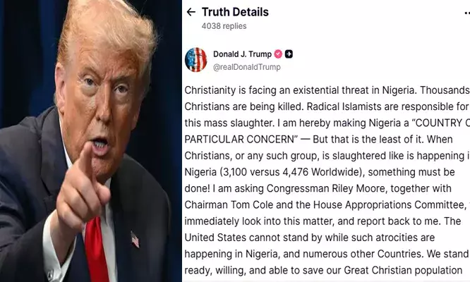 നൈജീരിയയില് മുസ്ലീം, ക്രിസ്ത്യന് സമുദായങ്ങള്ക്കിടയിലുള്ള സംഘര്ഷങ്ങളെക്കുറിച്ച് പരാമര്ശിച്ച ട്രംപ്, അവിടുത്തെ ക്രിസ്ത്യന് ന്യൂനപക്ഷത്തെ പീഡിപ്പിക്കുന്നതിന് തീവ്ര ഇസ്ലാമിസ്റ്റുകളെയാണ് കുറ്റപ്പെടുത്തിയത്. 'നൈജീരിയയില് ക്രിസ്തുമതം അസ്തിത്വ ഭീഷണി നേരിടുകയാണ്. ആയിരക്കണക്കിന് ക്രിസ്ത്യാനികള് കൊല്ലപ്പെടുന്നു. ഈ കൂട്ടക്കൊലയ്ക്ക് ഉത്തരവാദികള് തീവ്ര ഇസ്ലാമിസ്റ്റുകളാണ്. അതിനാല് ഞാന് നൈജീരിയയെ 'പ്രത്യേക ആശങ്കയുള്ള രാജ്യമായി' പ്രഖ്യാപിക്കുന്നു. എന്നാല് ഇത് ഏറ്റവും കുറഞ്ഞ നടപടി മാത്രമാണ്. നൈജീരിയയില് സംഭവിക്കുന്നത് പോലെ ക്രിസ്ത്യാനികളോ അത്തരം ഏതെങ്കിലും വിഭാഗമോ കൊന്നൊടുക്കപ്പെടുമ്പോള്, എന്തെങ്കിലും ചെയ്തേ മതിയാകൂ!' ട്രംപ് ശക്തമായി പ്രതികരിച്ചു.