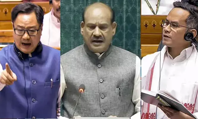 സ്പീക്കറെ മാറ്റുന്ന പ്രമേയം ഗൗരവ് ഗൊഗോയ് അവതരിപ്പിക്കുന്നതിനിടെ പ്രസംഗത്തില് 'അണ്പാര്ലമെന്ററി'യായ വാക്ക് പ്രയോഗിച്ചു എന്ന് പാര്ലമെന്ററി കാര്യ മന്ത്രി കിരണ് റിജിജു സഭയില് പറഞ്ഞതാണ് തര്ക്കത്തിന് കാരണമായത്. ഇതിനു മറുപടിയായി ഭാവിയില് പാര്ലമെന്ററി രേഖകള് പരിശോധിക്കുമ്പോള്, പ്രതിപക്ഷത്തെ ഏറ്റവും കൂടുതല് തടസ്സപ്പെടുത്തിയ പാര്ലമെന്ററി കാര്യമന്ത്രിയായി കിരണ് റിജിജു അറിയപ്പെടുമെന്ന് കോണ്ഗ്രസ് എംപി ഗൗരവ് ഗൊഗോയ് പരിഹസിച്ചു. മന്ത്രി കിരണ് റിജിജു മിക്കപ്പോഴും പ്രതിപക്ഷ അംഗങ്ങളെ തടസപ്പെടുത്തുമെന്ന് ഗൊഗോയ് ആരോപിച്ചു.'ഒരു ബിസിനസുകാരനെതിരെ യുഎസില് നടന്നുകൊണ്ടിരിക്കുന്ന അന്വേഷണത്തിന്റെ വിഷയം ഉന്നയിക്കാന് രാഹുല് ഗാന്ധി ആഗ്രഹിച്ചിരുന്നു. അതില് ഒരു മന്ത്രിയെക്കുറിച്ച് പരാമര്ശിക്കുന്നുണ്ട്. എന്നാല്, അതിനെക്കുറിച്ച് സംസാരിക്കാന് അദ്ദേഹത്തിന് അനുമതി ലഭിച്ചില്ല' ഗൊഗോയ് പറഞ്ഞു.
