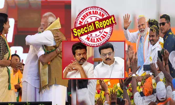 ചെന്നൈ: പ്രധാനമന്ത്രി നരേന്ദ്ര മോദി തമിഴ്നാട്ടിൽ എൻഡിഎയുടെ ലോക്സഭാ തെരഞ്ഞെടുപ്പ് പ്രചാരണത്തിന് ഇന്ന് ഔദ്യോഗികമായി തുടക്കം കുറിച്ചു. ചെങ്കൽപ്പേട്ടിൽ നടന്ന വൻ റാലിയിൽ പ്രധാനമന്ത്രിയോടൊപ്പം ഘടകകക്ഷി നേതാക്കളും അണിനിരന്നു. പ്രധാനമന്ത്രിയുടെ സന്ദർശന ദിവസം തന്നെ വിബി ജി റാം ജി ബില്ലിനെതിരെ ബദൽ ബിൽ അവതരിപ്പിക്കാൻ മുഖ്യമന്ത്രി എം കെ സ്റ്റാലിൻ ഒരുങ്ങുന്നതും സംസ്ഥാന രാഷ്ട്രീയത്തിൽ ശ്രദ്ധേയമായി.