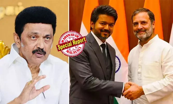 ചെന്നൈ: തമിഴ്നാട്ടില് നിയമസഭാ തിരഞ്ഞെടുപ്പ് ഒരുക്കങ്ങള് ചൂട് പിടിക്കുമ്പോള് അപ്രതീക്ഷിത രാഷ്ട്രീയ നീക്കങ്ങളാണ് അരങ്ങേറുന്നത്. കഴിഞ്ഞ കുറച്ചു കാലമായി ഡിഎംകെയുടെ തണലില് നിന്നിരുന്ന കോണ്ഗ്രസ്, ഇപ്പോള് പുതിയ വഴികള് തേടുന്നു എന്ന സൂചനകളാണ് പുറത്തുവരുന്നത്. നടന് വിജയിന്റെ തമിഴക വെട്രി കഴകം (TVK) കോണ്ഗ്രസിനെ തങ്ങളുടെ 'സ്വാഭാവിക സഖ്യകക്ഷി' എന്ന് വിളിച്ചതോടെ തമിഴ് രാഷ്ട്രീയം പുതിയൊരു വഴിത്തിരിവിലേക്ക് എത്തിയിരിക്കുകയാണ്.