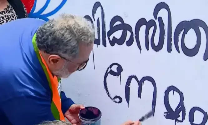 നേമത്ത് ചുവരെഴുതി രാജീവ് ചന്ദ്രശേഖര്; നിയമസഭ തെരഞ്ഞെടുപ്പ് പ്രചാരണത്തിന് തുടക്കമിട്ട് ബിജെപി; നേമത്ത് മത്സരിക്കാനാണ് ആഗ്രഹം, പാര്ട്ടി ദേശീയ ഘടകം അത് തീരുമാനിക്കട്ടെ എന്ന് സംസ്ഥാന അധ്യക്ഷന്
